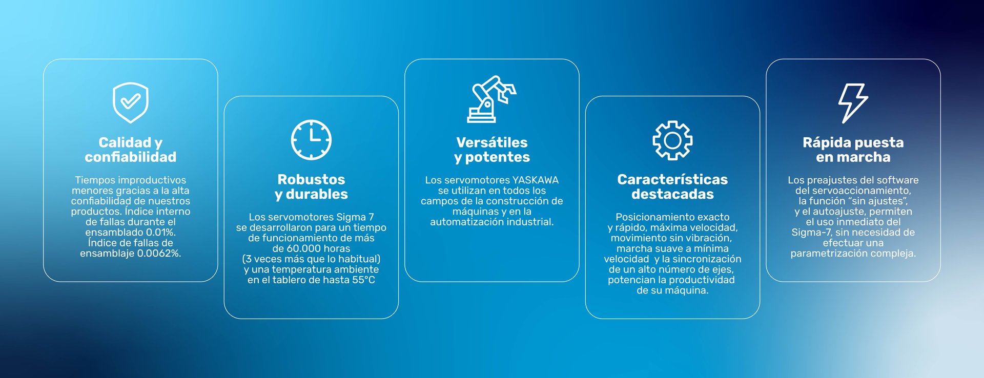 Yaskawa, más de 12 millones de Servomotores instalados en el mundo. Reconocidos por su gran torque, eficacia, precisión, confiabilidad y exactitud.